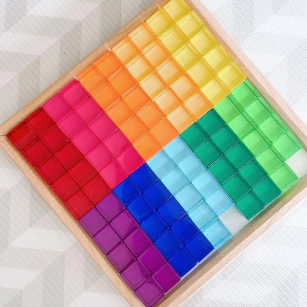 New edition colours! Bauspiel have slightly changed some of their Lucite colours. Please note the sets of 100 cubes also include 10 x purple cubes, replacing the light pink shown in some of our photos.