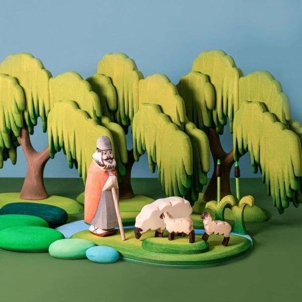 Bumbu Toys’ Shepherd Standing with Beard features the most beautiful hand-painted detail. Our serene shepherd features a grey hat and robe, topped by a chestnut brown cloak. He wears brown sandals and holds a wooden staff.