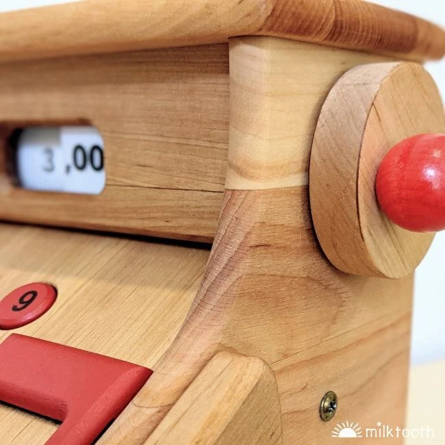 The Cash Register is made from high quality European alder wood and has been carefully handcrafted by skilled workers in Europe. This is a true heirloom piece; simply beautiful to pass down to children and grandchildren.