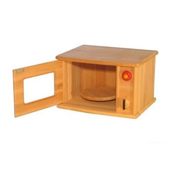 You will love the beautiful woodgrain on our Drewart Microwave Oven, and your child will love the pretend play involved in cooking up chicken nuggets, noodles, cocoa, and more. The Microwave includes a rotating plate inside and moveable knobs. It is a lovely addition to a toy kitchen or the home corner of a playroom.