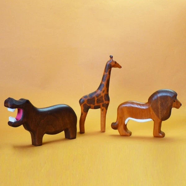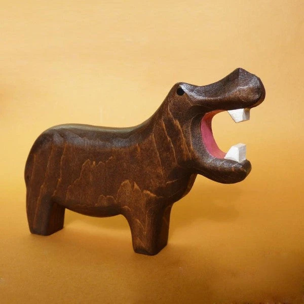 Our majestic Forest Melody Wooden Hippo is showing us the teeth in her wide open pink mouth. Her body is a rich deep brown that shows off the natural features of the timber just perfectly. Each Forest Melody wooden animal is handmade from gorgeous, textural alder wood.