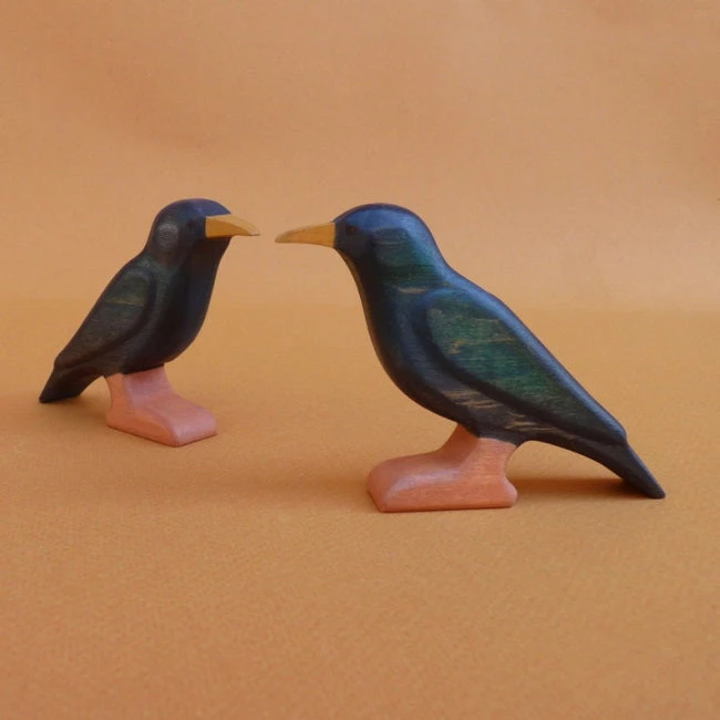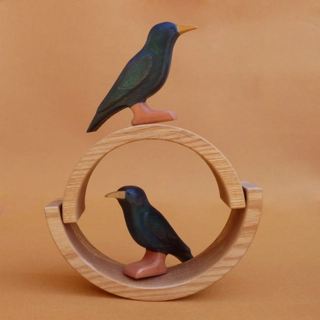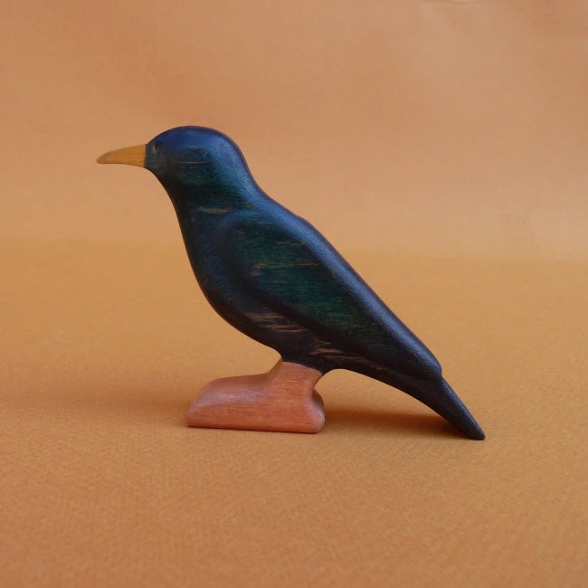 With rich blackish green feathers, Forest Melody’s Starling has a delicately curved yellow-orange beak and peachy-orange beak. Each Forest Melody wooden animal is handmade from gorgeous, textural alder wood.