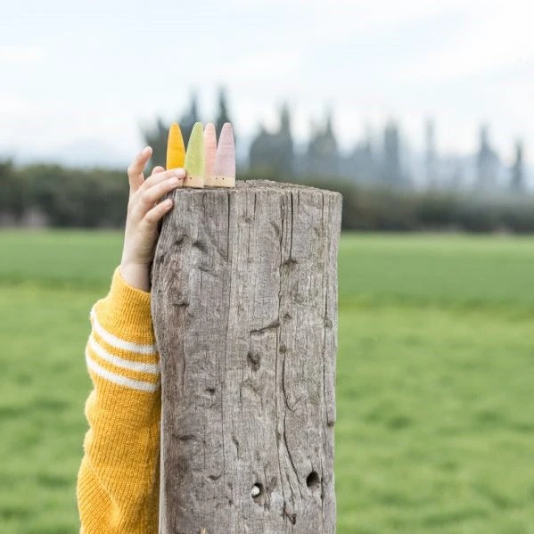 Give your child the sweetest little set of forever friends with the gorgeous Grapat 18 Palos set. Palos means “sticks” in Spanish, where the toys are made. Grapat is well-known for their beautiful, hand-finished wooden toys that encourage children to imagine their own stories and scenarios when playing. The Palos are created in a smooth cone shape, with painted hats in all of the colours of the rainbow (plus the complementary pastels) and two inquisitive little eyes.