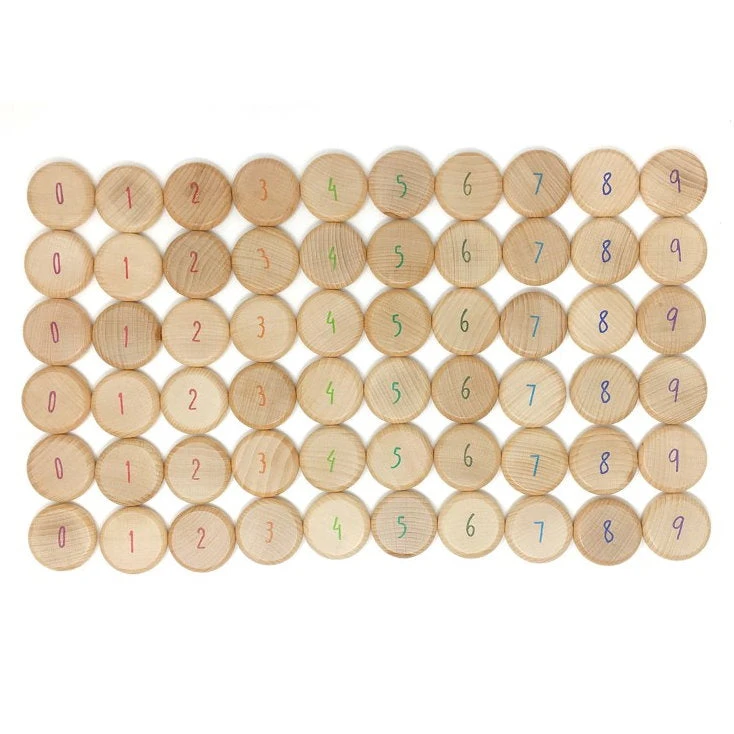 Grapat’s Coins to Count are the most beautiful educational toys. 60 natural wooden tablets, split into six sets, each numbered from 0 up to 9. Use them for counting, addition, subtraction, exchange as a currency, or tokens in a game.