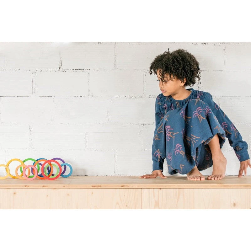 Grapat’s Nest Rings are a Milk Tooth favourite amongst Joguines Grapat’s new 2020 offerings. They are just so open-ended and versatile. Your child might like to stack them, sort them, colour match them, roll them, wear them, hang them, string them, and create flatlay art with them.