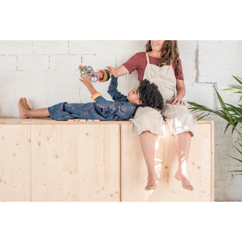 Made from natural timber with water-based colour stain, Grapat Nest Rings feel beautiful in the hand and are fantastic for sensory play.