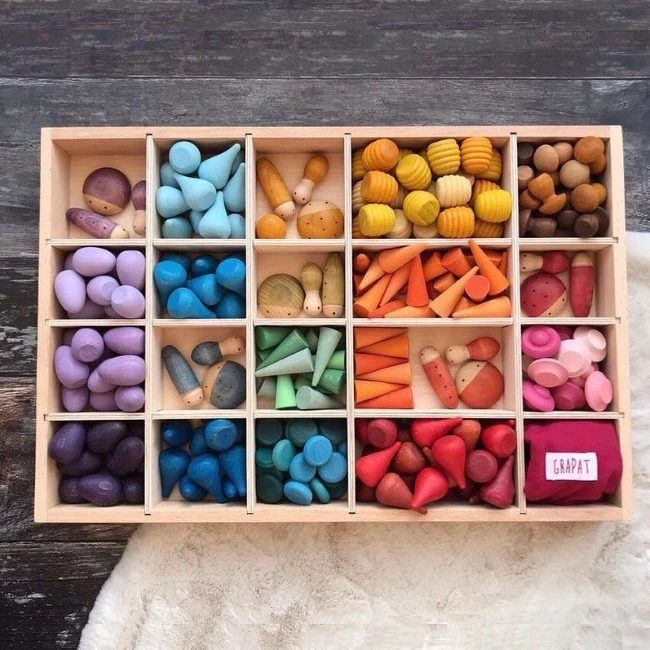 The beautiful new Grapat Tinker Tray is the perfect complement to your existing wooden toy collection, or use it for your child’s collection of feathers, seeds and leaves from nature, or their craft supplies. The 20 compartments in the storage tray allow for all sorts of sorting and categorising games and encourage a love of collecting and treasuring precious pieces.