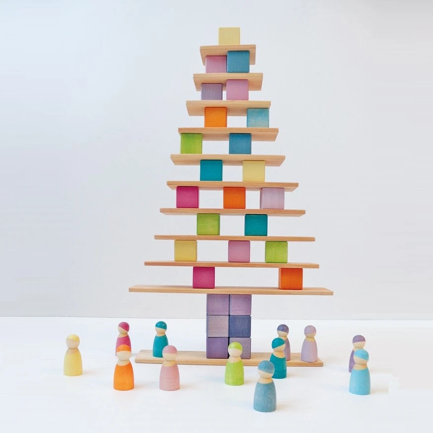 Grimm’s Natural Building Boards are a wonderful addition to your Grimm’s collection – and especially to a Grimm’s rainbow – or you can use these alone. Use them to stack and construct and sort and balance. The beautiful natural timber and stepped sizes add texture and interest.