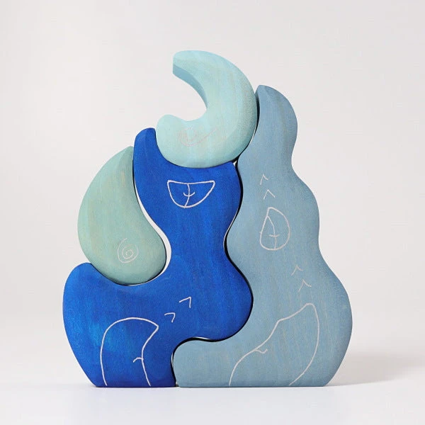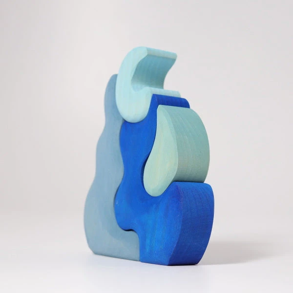 In four different shades of blue with handpainted patterns, Casa Luna is just divine. So much fun as a puzzle or for stacking, Casa Luna can also be used for small world play as a gnome or fairy house. The shapes are reminiscent of a moon, a water droplet, and clouds.