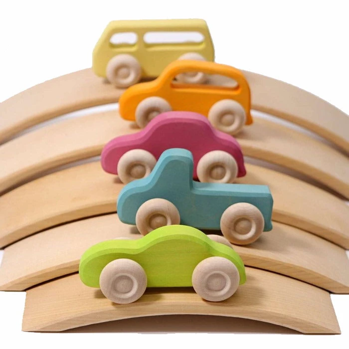 A gorgeous set of pastel coloured timber cars, perfect for playing in, amongst, and along Grimm’s rainbows, pebbles, people, and bridges, as well as on our ever popular Waytoplay car tracks.