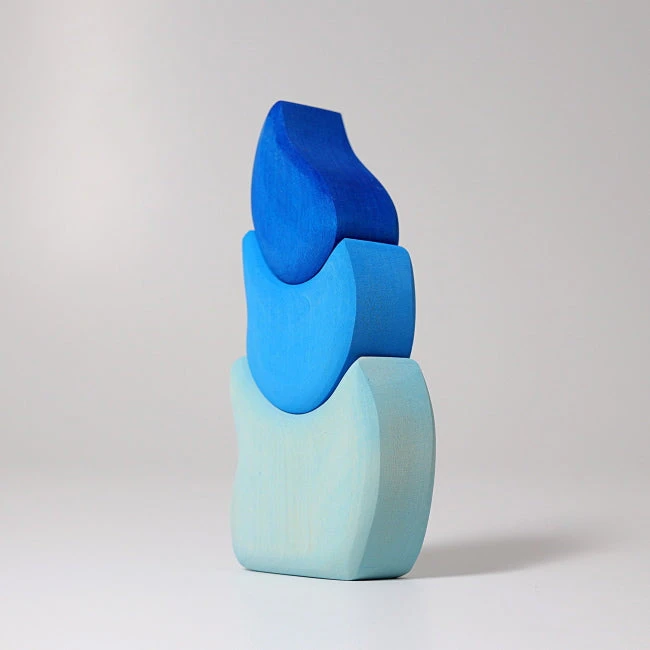 Grimm’s Drop Tower delivers you beautiful blues, handpainted patterns, and organic shapes. The pieces curve into each other to form a gorgeously curvy tower and can also be used in combination with other Grimm’s toys to create villages or add curves, doors, and windows.