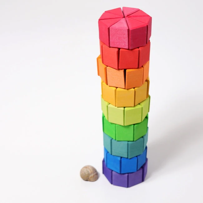 The beautiful Grimm’s Large Octagon Puzzle includes 72 triangular wooden blocks stained in gorgeous bright colours. The blocks form the most amazing mandala array. Your child can play with the Octagon as a puzzle in its round timber base tray, or use the blocks with other sets, to form octagons, and more.
