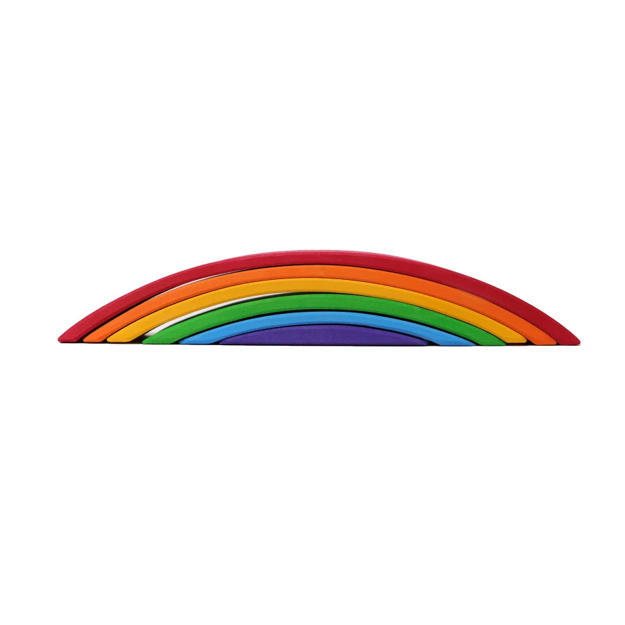 The beautiful Grimm’s Rainbow Bridge is the perfect accompaniment to your Grimm’s Cars, Trucks, and Buses. Comprising six different arcs in strong rainbow colours, they are wonderful pieces to aid in the creation of a marble run. Stack them to create a colourful crazy tower.