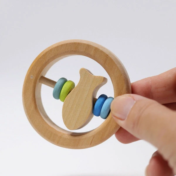 The beautiful timber Grimm’s Circle Fish Rattle Zeppo is the perfect size for the smallest of hands. The brightly coloured beads in the middle will attract attention not only for their brilliant colours but also for the lovely soft sound they make as they move around along with the fish.