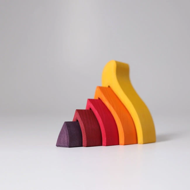 The five curvaceous pieces sit beautifully together and also create the most magnificent sculptures. The Grimm’s Stacking Fire has been carefully coloured using non-toxic water-based dyes.