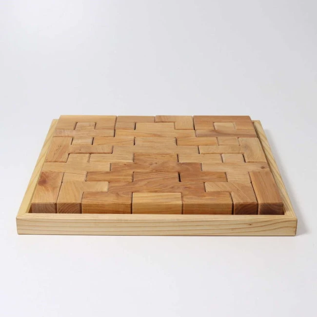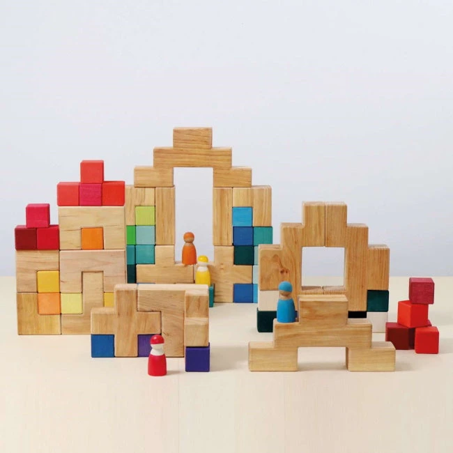 New in 2022, Grimm’s Stairway Building Set is a versatile and useful set of beautiful oiled alder wood blocks. It contains 19 natural blocks in plus or x shapes, squared corner shapes, stairs, T shapes, U shapes, and more. Wonderful for building houses, stairs, cities, mazes, and more by itself, the Stairway blocks are also the perfect complement to an existing set of coloured blocks, such as the Large Stepped Pyramid, Romanesque, or 1001 Nights.