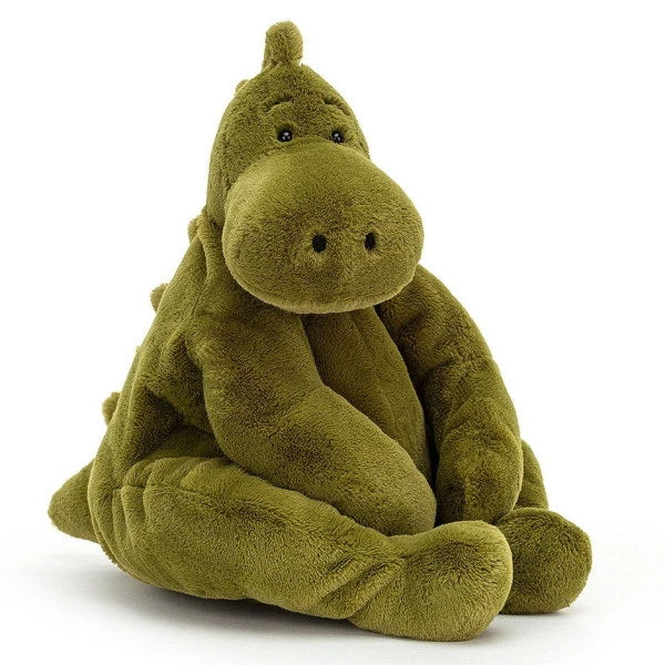 This sweet Jellycat dinosaur likes to sit up on your bed and wait patiently for you to come home. He approximately fits into the medium Jellycat size category, a perfect armful suited to the smallest of children right up to big kids of all ages.