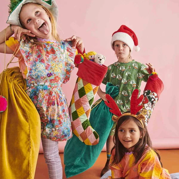 In 100% cotton velvet, a Kip and Co Santa Sack is a luxurious addition for under the Christmas tree. It features lovely fluffy multi-coloured pom-poms.