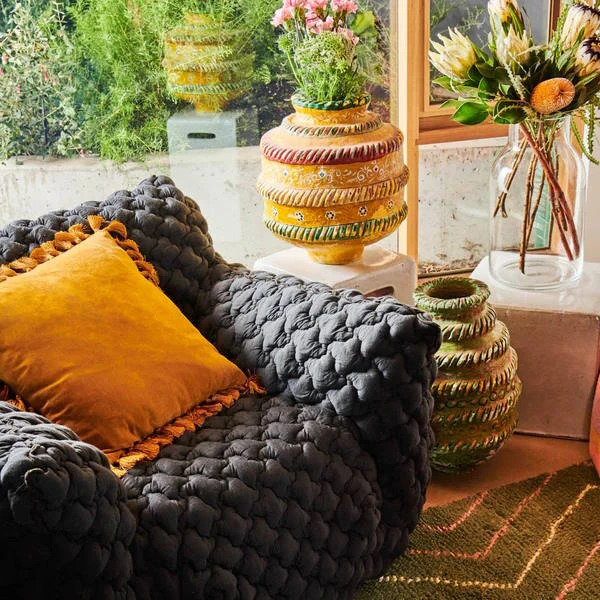 Kip and Co’s Pecan Velvet Tassel Cushion is a rich butterscotch light brown. It has matching tassels adorning the edges. Use your beautiful cushion in the nursery, playroom, bedroom, or living room to add texture and luxury.