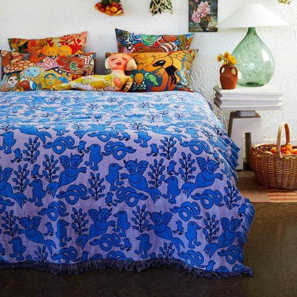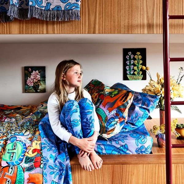 The incredible Kip and Co x Mirka collection is a celebration of beautiful art and one of Australia’s most beloved cultural icons, Mirka Mora. The colourful Ma Vie Pillowcase showcases a collage of Mirka’s stunning works in rich, vibrant tones.