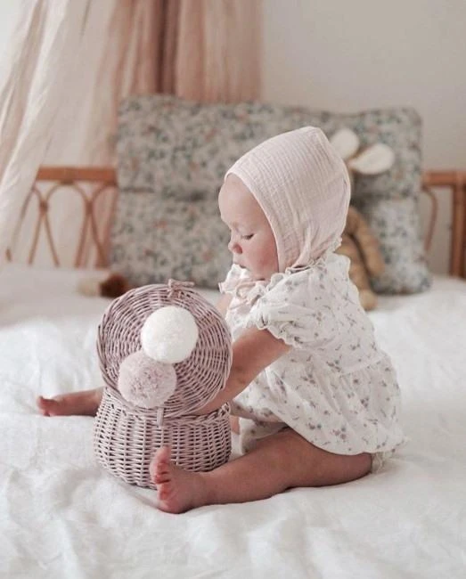 Lilu Wicker Baskets are simply beautiful pieces for your child to store their special knicknacks and treasures, or for you to store your baby’s muslins or dummies. They’re as gorgeous to look at as they are useful in a nursery or child’s bedroom. Each has a hinged lid that closes with a small wicker latch.