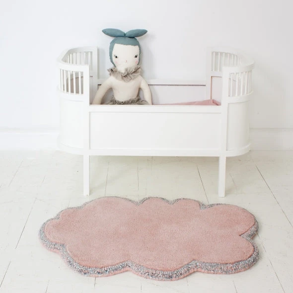The most adorable doll’s accessory! These Little P for Little People Doll’s Size Cloud Rugs are just the sweetest piece for any nursery, playroom, or nursery in this gorgeous Blossom Pink with Silver edging.