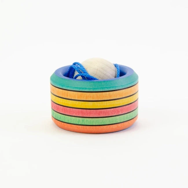The Mader Bilboquet is a beautiful wooden version of the classic string and ball catching game. How many times in a row can you catch the ball in the cup? This simple toy is wonderful for hand-eye coordination in children. Each Bilboquet has a different arrangement of colours, yours will be selected at random.