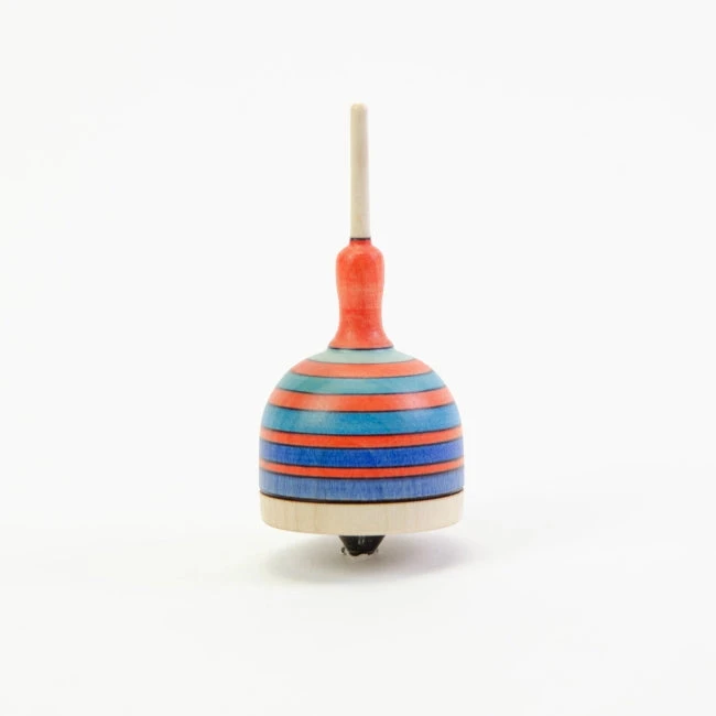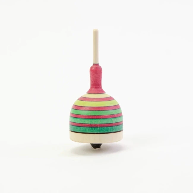The Mader Fridolin Spinning Top is particularly beautiful, with its domed shaped and multi-toned stripes. A medium-level fingertop, the Fridolin has been handcrafted from maple wood and features a metal tip. It has been hand-stained in beautiful stripes and you can choose amongst three different colourways.