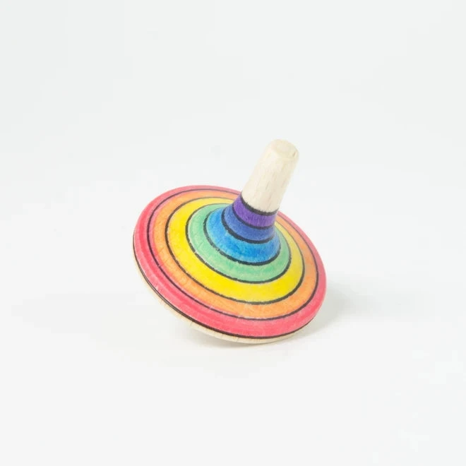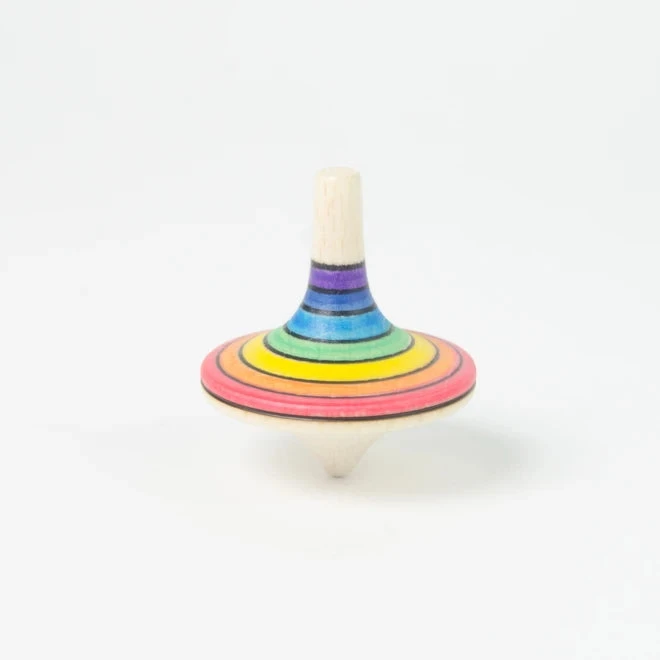 The Mader Rallye Spinning Top Rainbow is a very smooth-running, beautifully well-balanced, and easy-to-use spinning top. Challenge yourself by turning the top over and spinning it on its stem.