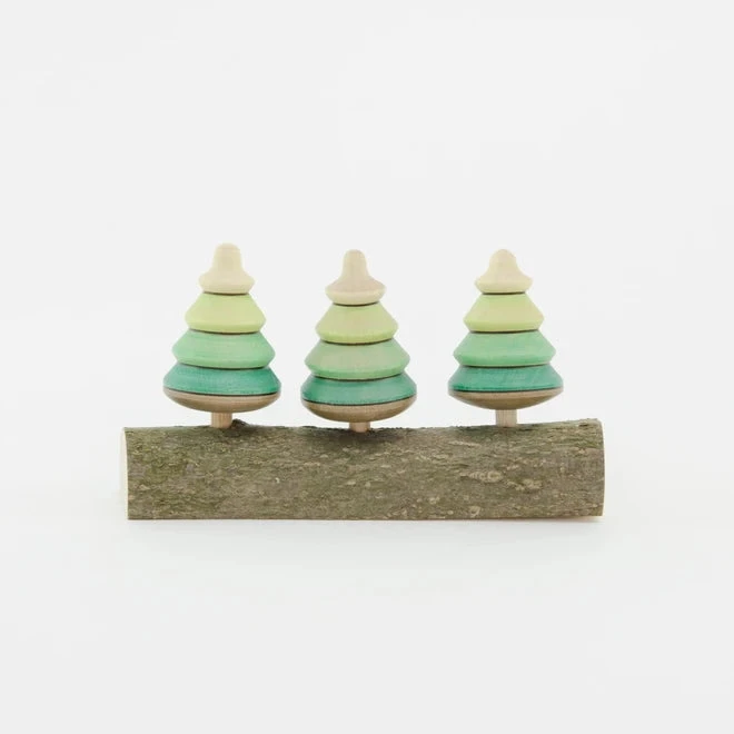 - Three tree spinning tops on a natural branch