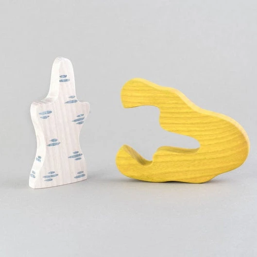 Mikheev wooden toys are handmade in Russia from natural birch, ash, or oak wood. They’re created with flat bases, making them easy to stand up during small world play. Mikeev toys are finished with a non-toxic acrylic lacquer. The finish is mostly matte with a slight sheen.
