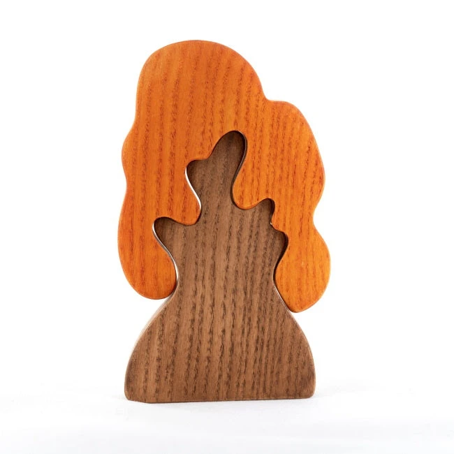 This lovely Autumn Oak Tree has been crafted by Mikheev from oak timber. It comes in two pieces that fit together as a very simple puzzle. The beautiful woodgrain of the timber can be seen through both the burnt orange of the boughs and the chestnut brown of the tree trunk.
