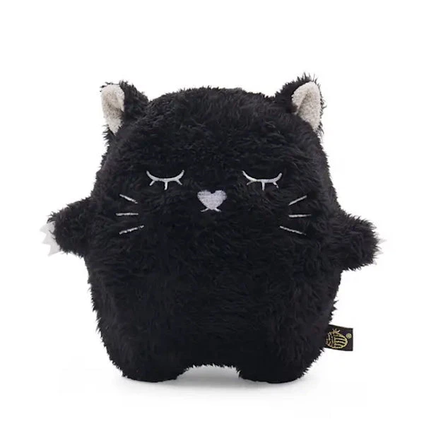 Handsome Ricemomo is a mopey moggy who drinks nine lives worth of Ricesoup a day! This grumpy cat has a fluffy black body, a pom-pom tail, and a cute embroidered face with a heart-shaped nose.