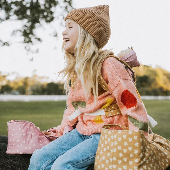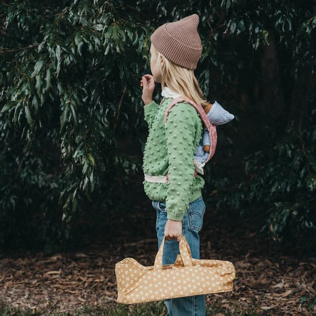Your child will be able to take their favourite friend wherever they go with the gorgeous Leaf Dinkum Doll Carry Cot from Olli Ella. Made from durable cotton canvas, the Leaf print features a mustard base smattered with a little cream leaf print. The Carry Cot has been designed to perfectly fit your child’s Dozy Dinkum or Cozy Dinkum Doll but their full-sized Dinkum Doll will also fit – it’s just a bit more of a snug fit!