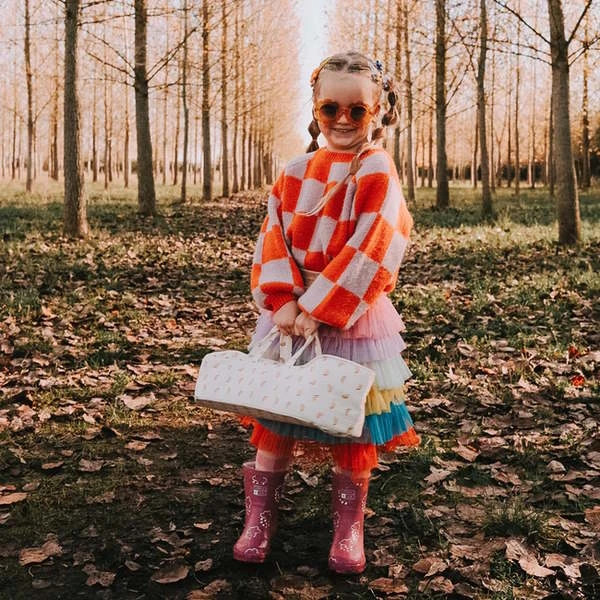 Your child will be able to take their favourite friend with them wherever they go with the beautiful Rainbow Dinkum Doll Carry Cot from Olli Ella. Made from durable cotton canvas, the Rainbow print features a soft pastel rainbow (the same one printed over every Dinkum’s heart) on an almost-white base. The Carry Cot has been designed to perfectly fit your child’s Dozy Dinkum or Cozy Dinkum Doll but their full-sized Dinkum Doll will also fit – it’s just a bit of a snug fit!