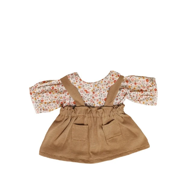 The beautiful vintage-inspired Prairie Clothing Set for Olli Ella Dinkum Dolls includes a soft cotton dress with straps and the prettiest little top in a tiny floral print.