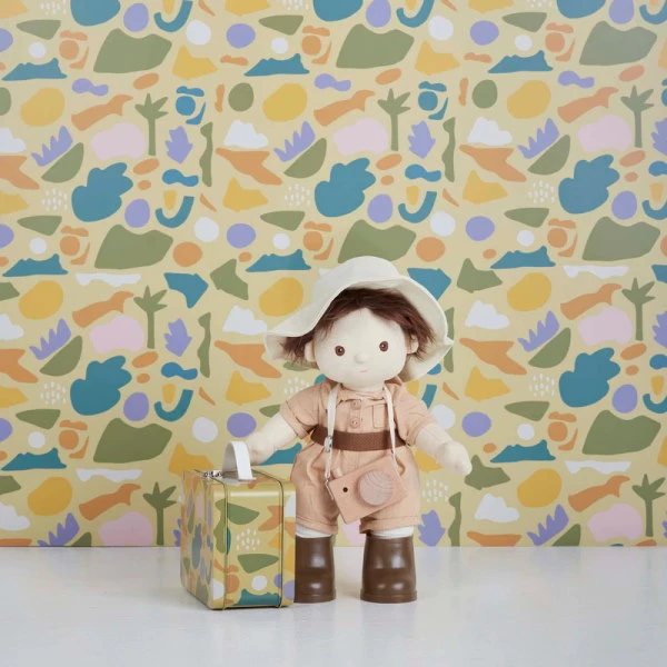 Now your Dinkum Doll can play dress-ups too, with Olli Ella’s gorgeous Pretend Packs! The Olli Ella Dinkum Doll Explorer Pretend Pack includes a very sweet brightly coloured camouflage print tin case, ad ultra-cute little beige safari suit with belt and bucket hat, a mini wooden camera for spotting the animals (or is your dollie spotting dinosaurs?), and slip-on brown boots. Everything your dollie needs to explore new worlds and study the creatures.