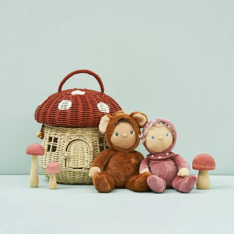 Be inspired to hide, play, forage, and dance in the woods when you hold the sweet Olli Ella Dinky Dinkum Forest Friends, as they snuggle floppily into the palm of your hand. Say hello to Bobby Bear! He’s a limited-edition, palm-sized playmate, perfectly weighted in all the right places, and outfitted in a snuggly plush velvety cotton. The woodland Dinky Dinkums are the smallest, sweetest snuggle companions.