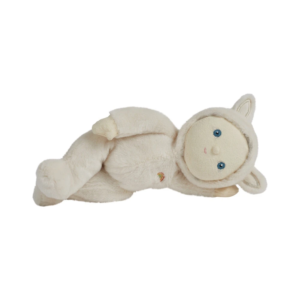 Fifi Fox Dinky comes packaged in a vintage-inspired paper package (pssst keep your eyes peeled for a sweet little glow-in-the-dark sticker on the tag too). Fifi is the cutest little white fox, in a creamy velvety onesie complete with perky fox ears that just reveal a snowy fringe of white hair.