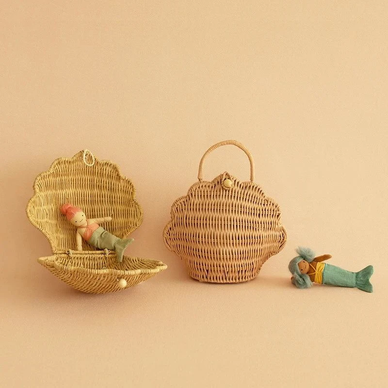 In 100% handwoven natural rattan, Olli Ella’s Shell Bag is vintage-inspired and oh so pretty. Your child will adore storing their treasures and trinkets inside, and it perfectly fits the gorgeous Holdie Folks – the Holdie Mermaids love it! This is the delicate Rose Pink Shell Bag and it’s also available in a neutral Straw colour.