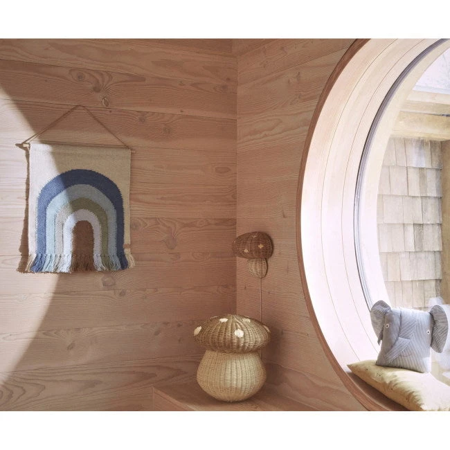 The iconic OYOY Follow the Rainbow Wall Rug now comes in a gorgeous Mini version! The lovely Pale Blue colourway features ocean blue, pale blue, fawn, grey, and rusty brown arches, all on a soft creamy beige background. With its lovely woolen texture, stylised rainbow, and fringed lower edge, this striking wall hanging is going to make a statement.