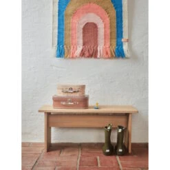 OYOY’s Leopard Wall Rug is a lovely size at approximately 69cm long by 50cm wide. It comes with a timber stick and soft tan leather strap for hanging.