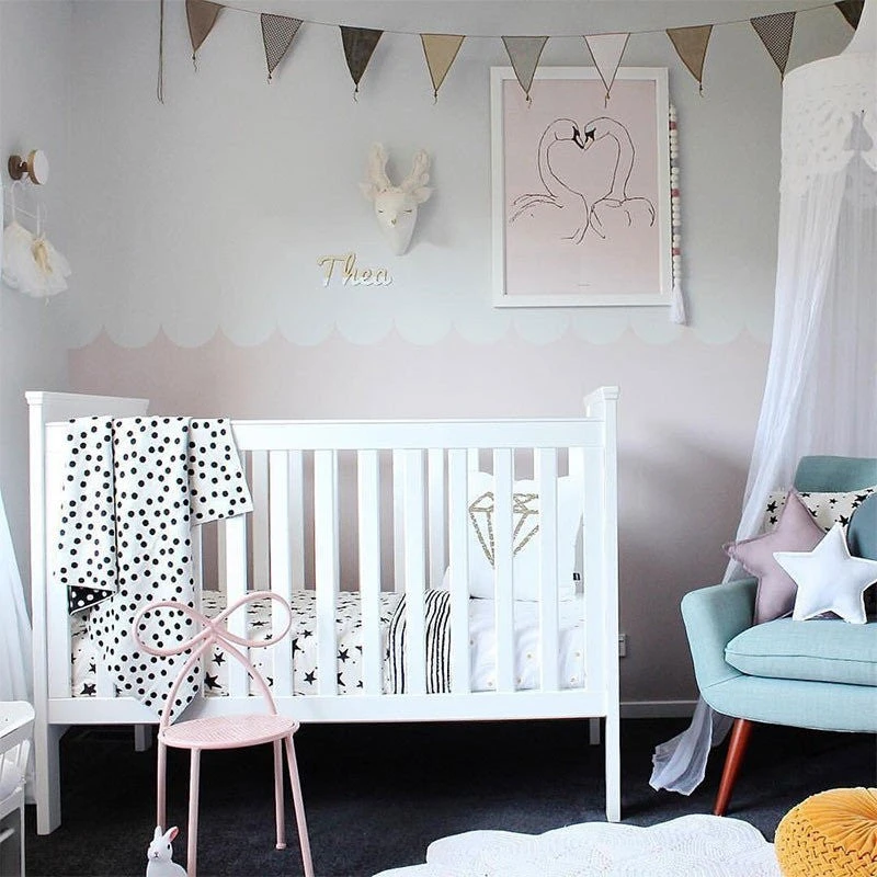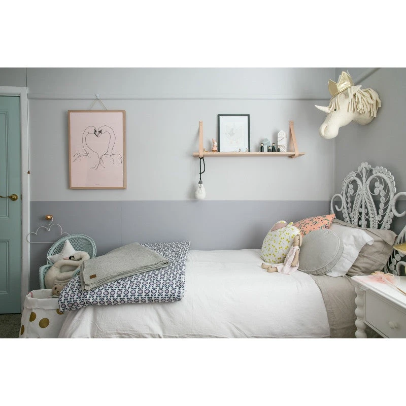 With its blush pink background and pair of swans in a black line drawing, Pax & Hart’s Sunday Love Birds Art Print Poster is perfect in a nursery or girl’s bedroom. The swans necks’ form a gorgeous heart shape in negative space.