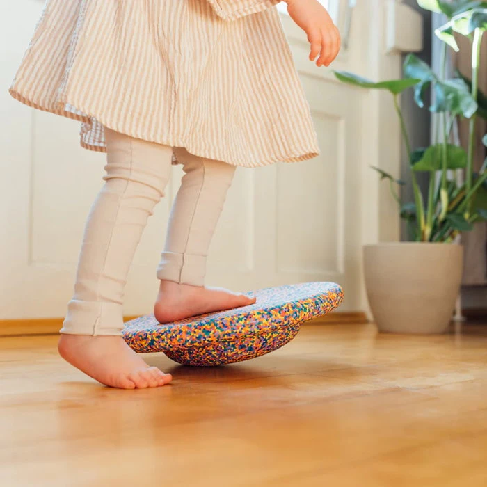 - One Stapelstein Balance Board in Rainbow Classic Confetti colours