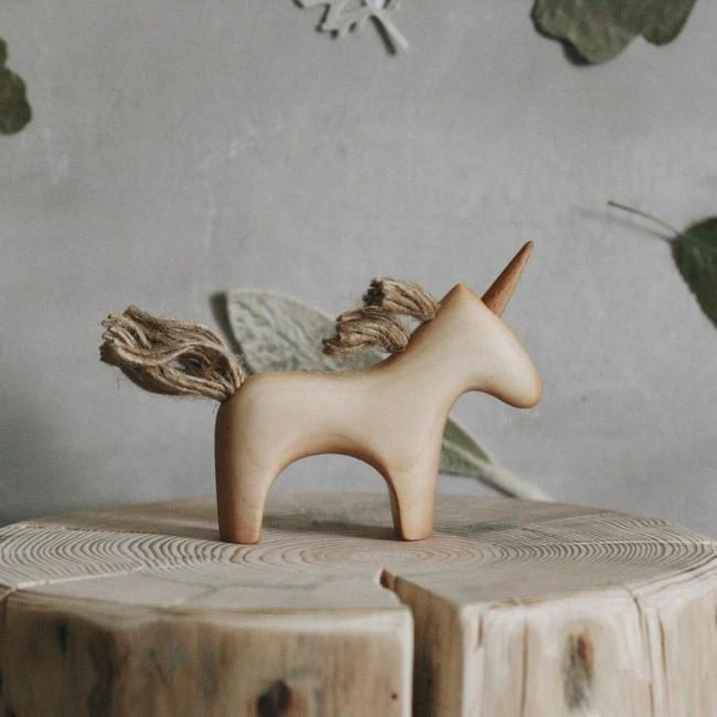 The most beautiful little wooden unicorn with a gorgeous full mane and tail. She’s magical and ethereal, just perfect for a playroom shelf or above your child’s bed. The Tateplota unicorn is the perfect size to pair with Ostheimer figurines or CLiCQUES dolls.