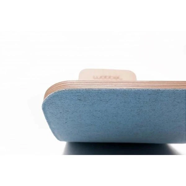 This Wobbel Board Pro comes with a muted Sky Blue felt underside. The Pro is the sister board to the Wobbel Original with felt. The difference comes down to the material used for the felt on its underside. Wobbel uses recycled PET bottles to create the pressed felt layer on a Pro board. This makes the Wobbel Pro suitable for intensive use and easier to clean.